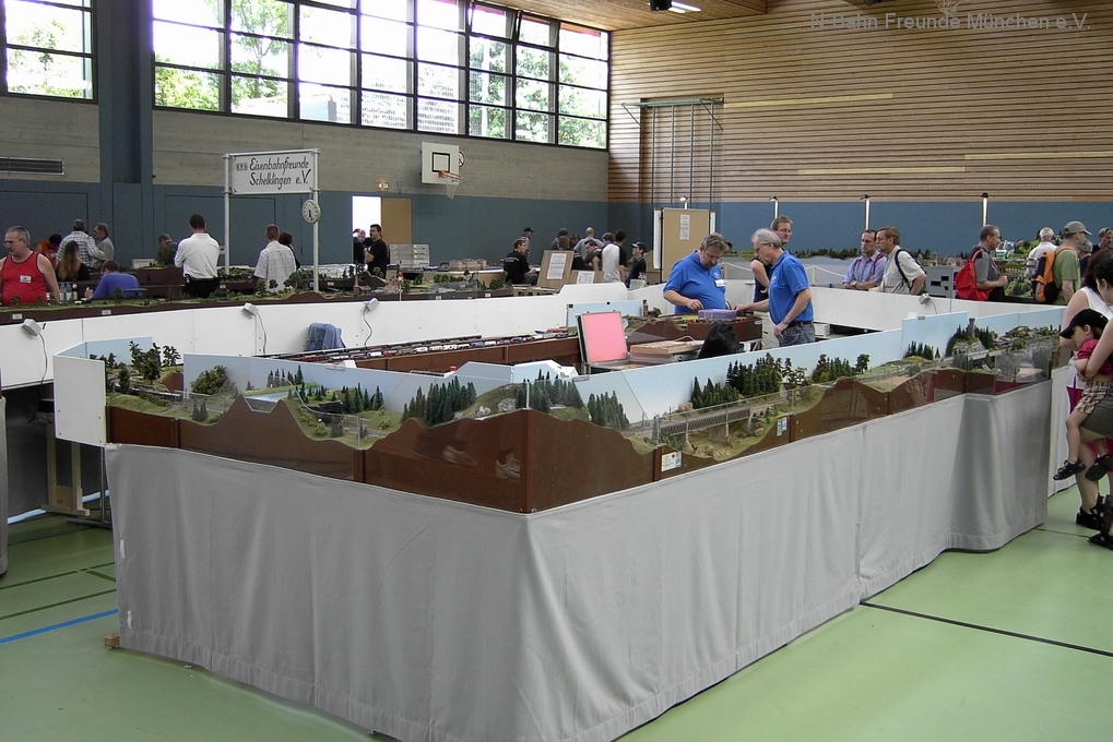 Wenn die große Bahn etwas zu feiern hat, wird in vielen Fällen ergänzend eine attraktive Modellbahnausstellung organisiert. So geschehen auch bei 100 Jahre Lokalbahn Amstetten- Gerstetten. Die Ulmer Eisenbahn Freunde hatten uns schon letztes Jahr zu diesem Jubiläum eingeladen und wir konnten inmitten der großen Aurainhalle eine mittelgroße übersichtlich geplante Anlage mit 34 Modulen und einer Gleislänge von ca. 100 m vorstellen. Etwas unsicher gestalteten sich wieder mal die Vorbereitungen bezüglich Quartier, Transport und Bezahlung und Andreas Brustkern hatte seine liebe Mühe, alles unter Dach und Fach zu bekommen. Wobei sich der Transport der Ausrüstung per Wechselauflieger nachträglich als recht vorteilhaft herausstellte. Auch Unterkunft und Verpflegung waren dann in Ordnung.