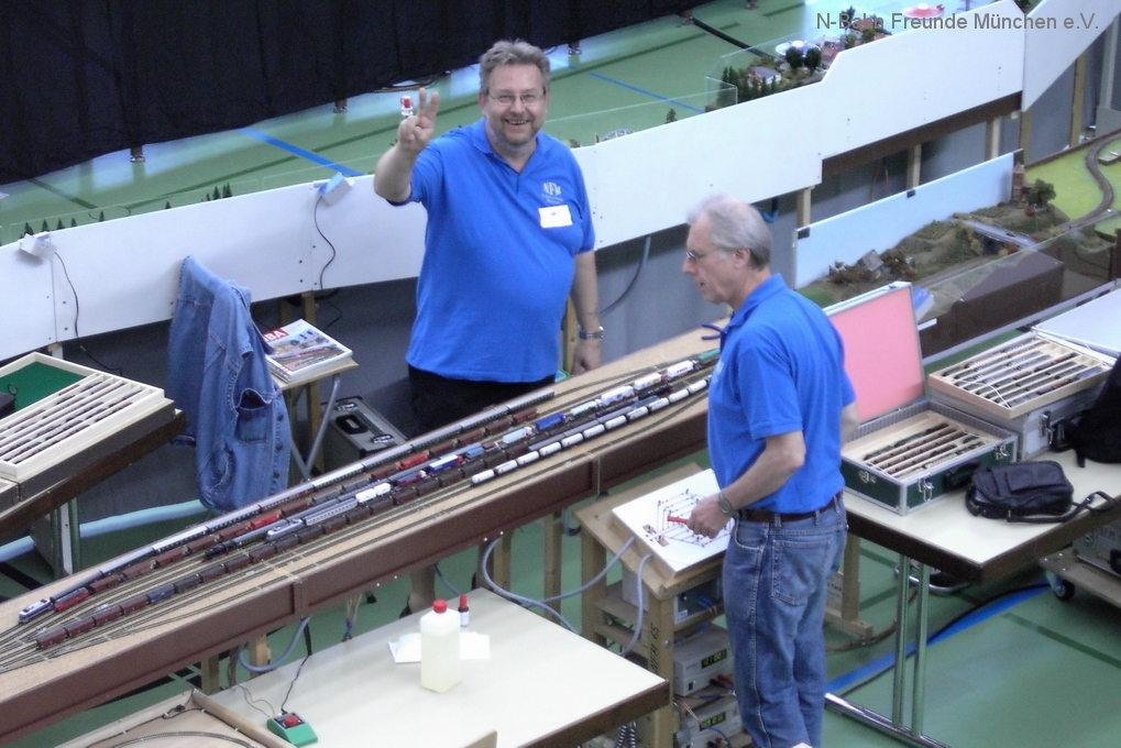 Mit dabei waren auch die Mitglieder des Günztal- Museumsbahn- Vereins aus Ottobeuren mit ihrer N-Anlage und es wurden die ersten Kontakte hergestellt für die Ausstellung dort im November.